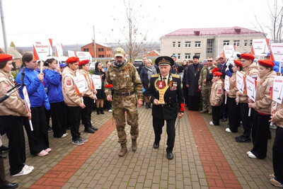 В митинге участвовали представители ветеранских организаций, участники СВО, представители сельских органов власти и духовенства, юнармейцы и воспитанники патриотических клубов школ района, курсанты Неклиновской школы-интерната с первоначальной летной подготовкой.