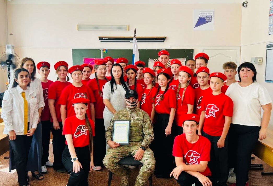 8 сентября в МБОУ Самбекской СОШ прошла встреча учащихся с участником специальной военной операции .